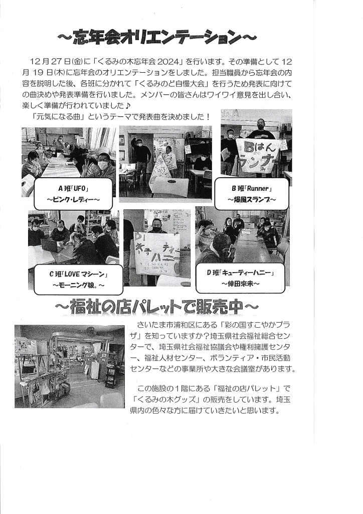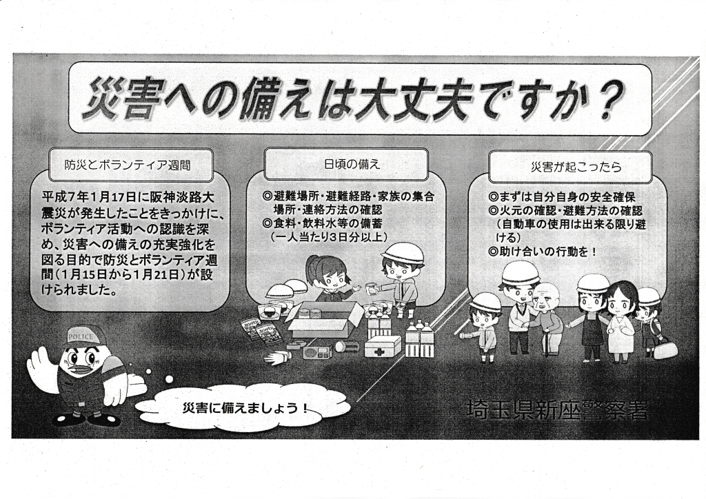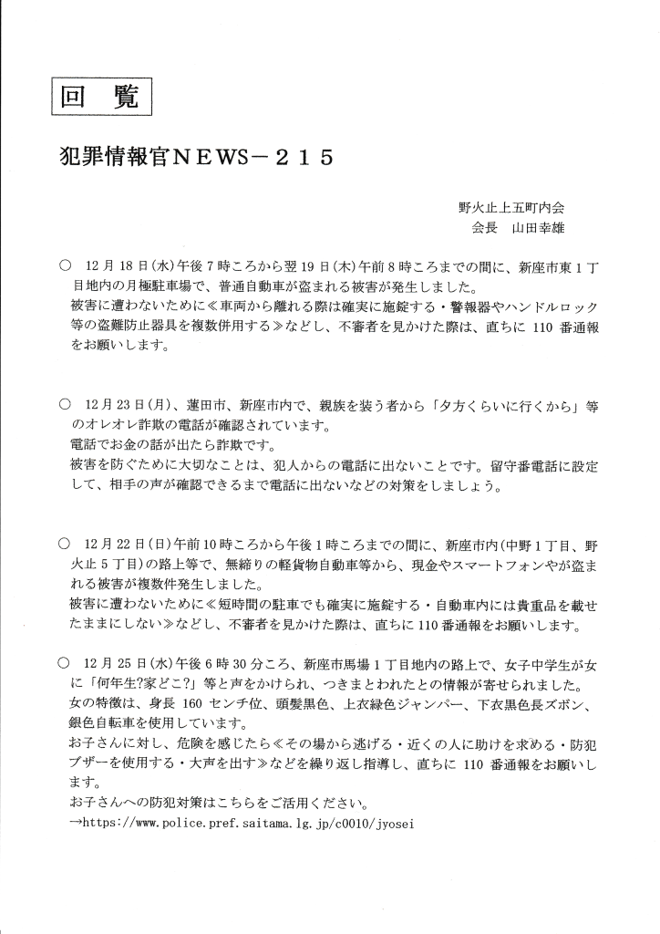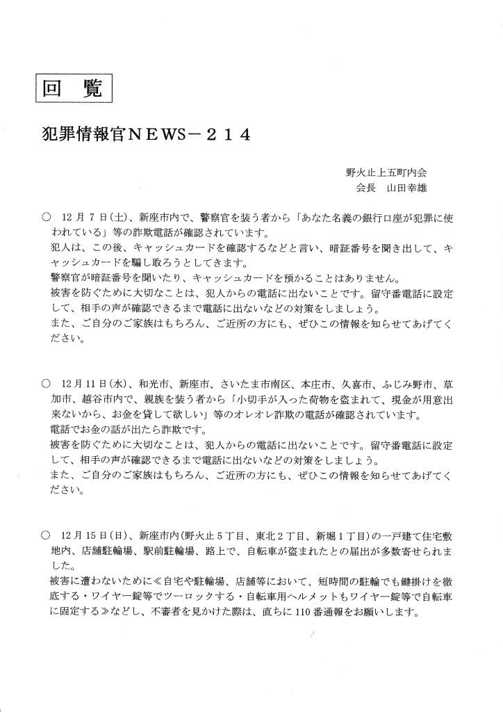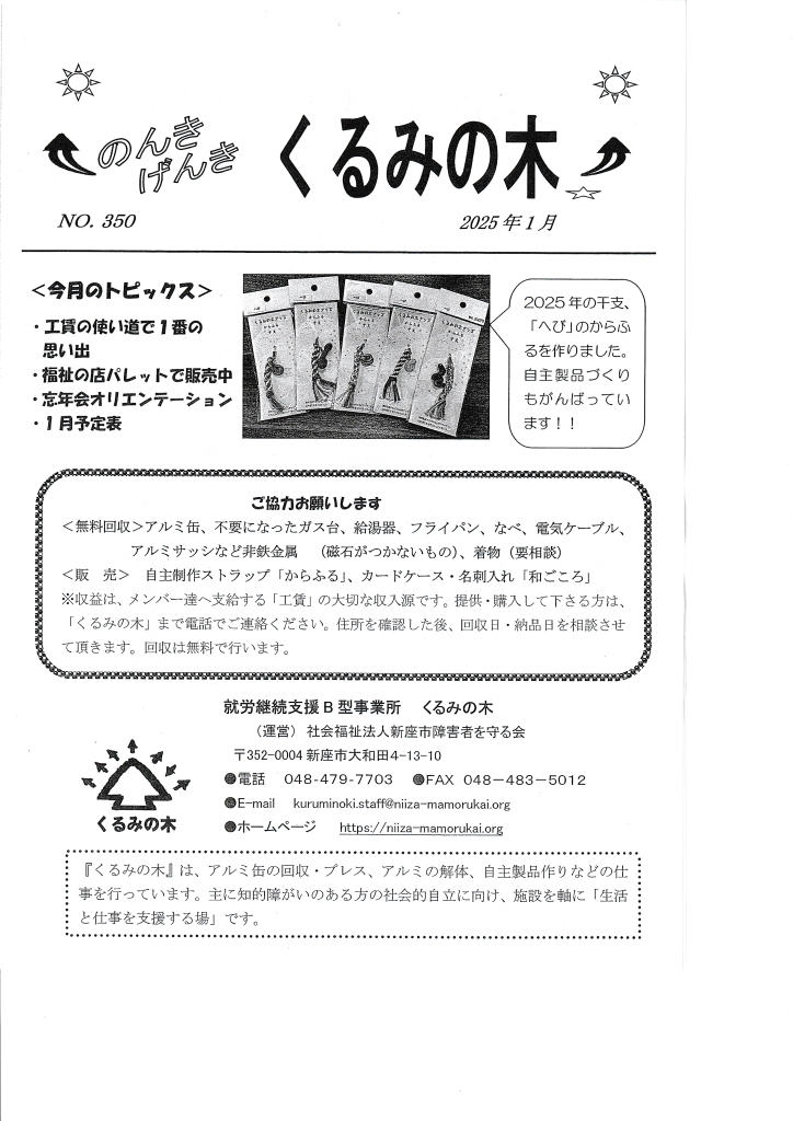 回覧板 2024年12月30日 回覧板 2024.12.30 いちなると防犯を学ぼう 社会福祉法人新座市障害者を守る会新座市障害者を守る会は、障がいのある本人一人ひとりの望む生活を叶えていきます。 そのために私達は障がいのある本人を中心に本人の家族や支援者、地域、それぞれの想いや力をつなぎ合わせます。 これらの交流により、つながりのあるあたたかい地域となる...