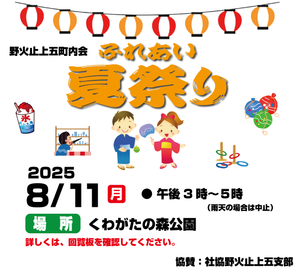 野火止上五町内会 ふれあい夏祭り 開催のお知らせ