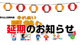 本日予定されていたふれあい夏祭りは、悪天候のため、8月24日(日)に延期することになりました。参加を楽しみにしてくださっていた皆様には、大変申し訳ございませんが、何卒ご理解いただけますようお願い申し上げます。皆様に安全に楽しんでいただけるよ...