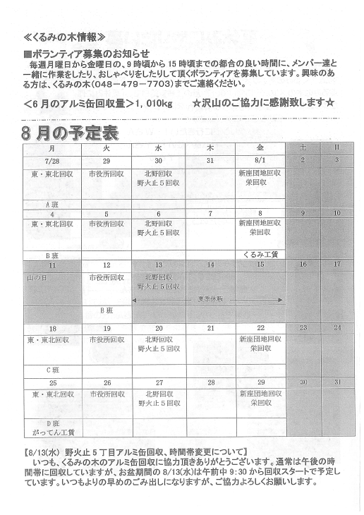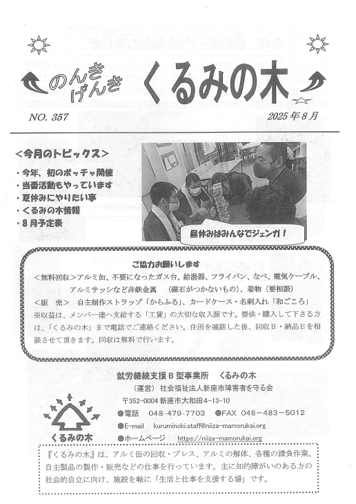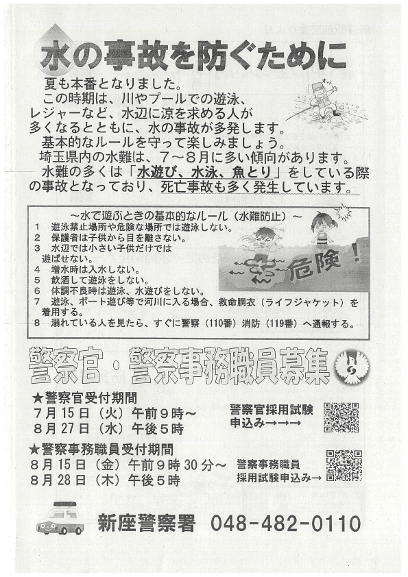 回覧板 2025年8月7日 回覧板 2025.08.07 新座警察署 - 埼玉県警察 埼玉県警察官採用試験申込 警察事務職員採用試験 社会福祉法人新座市障害者を守る会新座市障害者を守る会は、障がいのある本人一人ひとりの望む生活を叶えていきます。 そのために私達は障がいのある本人を中心に本人の家族や支援者、地域、それぞれの想いや力をつなぎ合わせます。 これらの交流により、つながりのあるあたたかい地域となる...